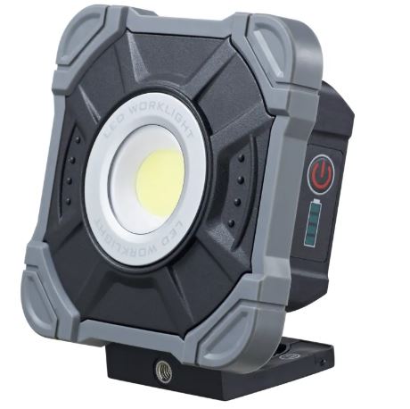 WORKLIGHT proiettore ricaricabile a LED 20W, 2200lm, 6500K, IP54, batteria a litio 3.7V/4000mAH, con cavo di ricarica USB Type C 60cm, dimmerabile con 3 livelli di luminosita (100%, 50% e 25%), tempo di ricarica 2-3 ore, tempo di funzionamento 2 ore al 100%.